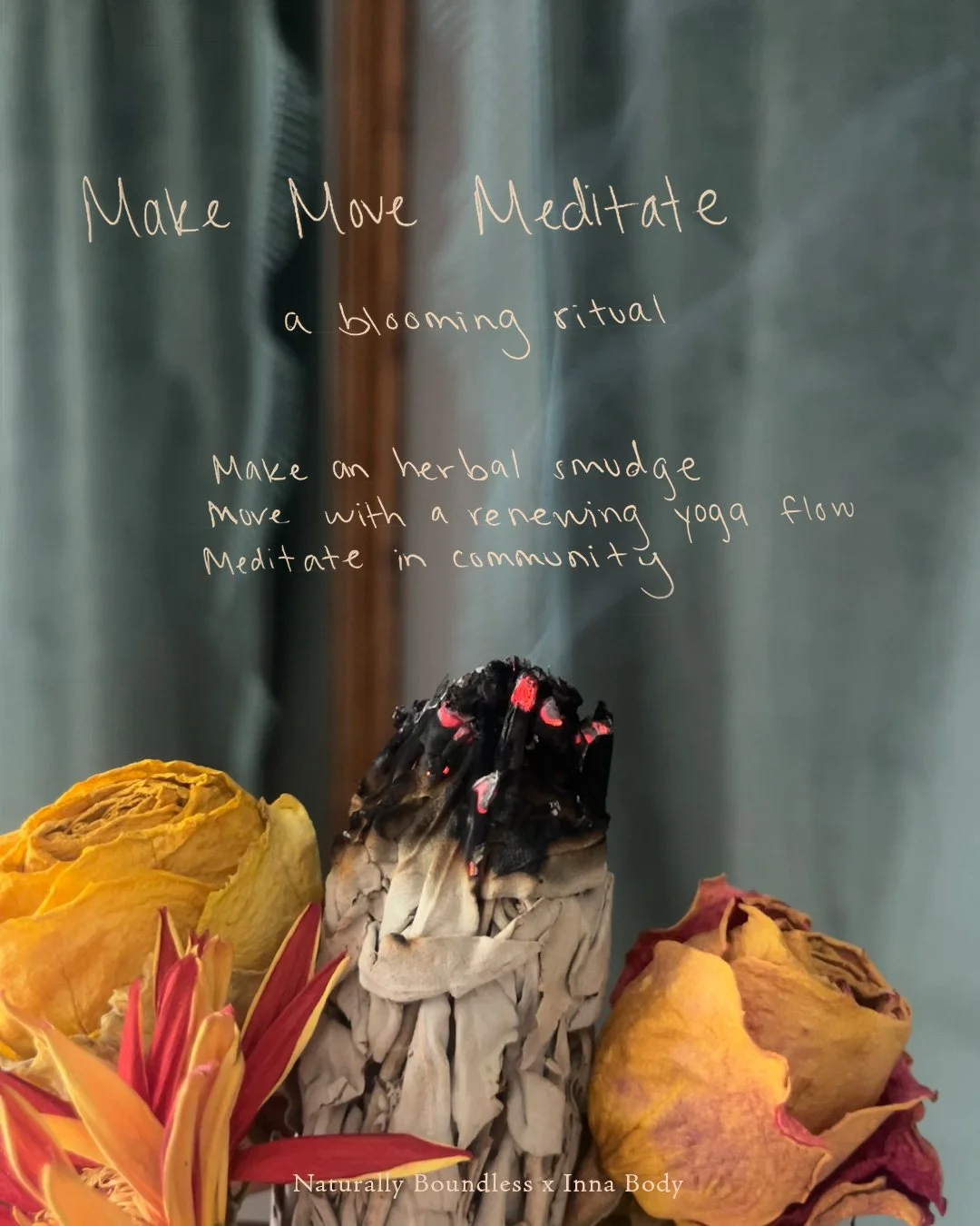 step into the Spring season with a renewing and energizing gathering, where you’ll create herbal smudges to take with you, move through a renewing yoga flow, and mediate on what you’ve planted and what you want to see bloom.